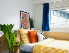 生活必备设施:可容纳690名学生的大型学生社区,提供En-suite和Studio房型,2-6人间,配备私人独立卫浴,平衡 “轻社交” 与个人隐私,居住舒适度更高。房租已包含暖气、水费、电费,无需额外分摊;公寓内(含房间及公共区域)全覆盖 Wi-Fi,且提供超高速宽带,满足线上学习、娱乐需求。提供自行车存放处、自助洗衣房及垃圾分类回收点,解决日常居住基础需求。配备 24 小时监控(CCTV)、24 小时协助服务及驻场服务团队;采用门禁安全准入系统与消防系统,同时为住户提供财物保险,居住安全性十足。