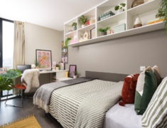 单人房Ensuite房型是6-9人共用厨房,独立卫浴的单人房,位于公寓的新建区域,3/4大小床