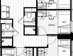 • 多人间卧室两人共享,卫浴独立或共享,客厅厨房共享。