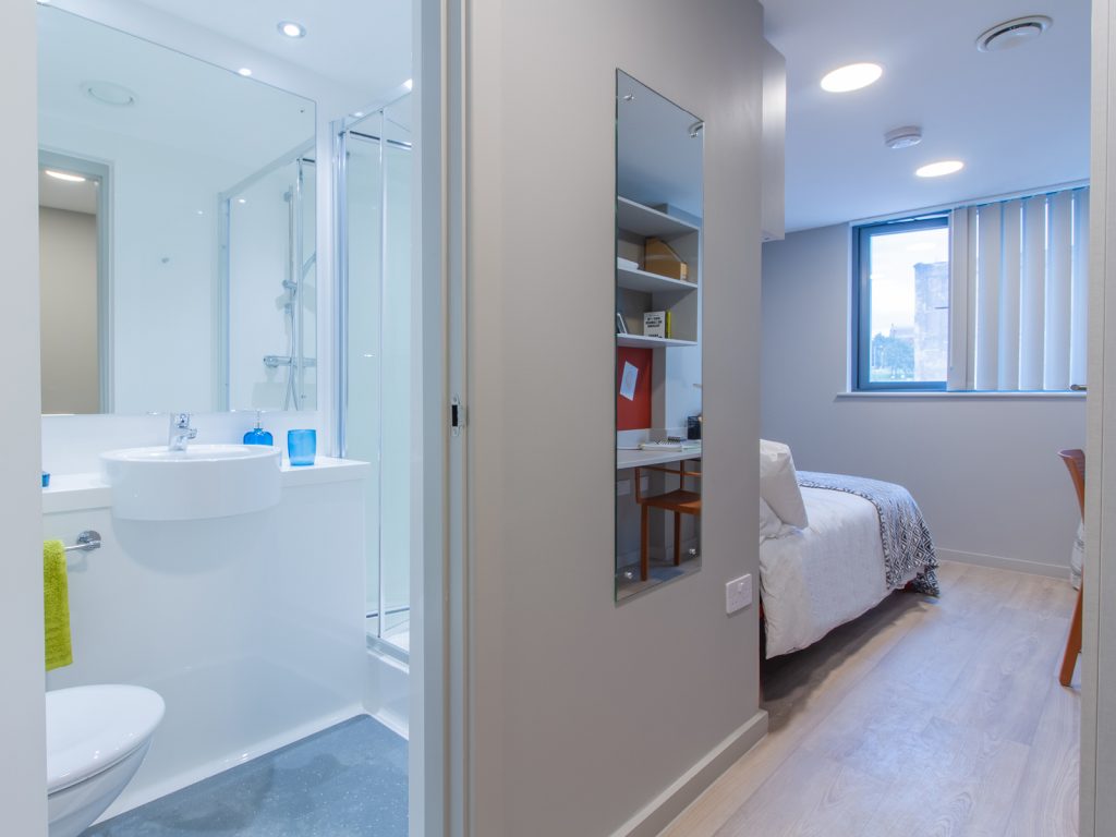 房型为Studio与Ensuite,Studio面积18-25㎡超宽敞,Ensuite 共享大厨房。均配双人床、独立卫浴与可开窗户,采光极佳,暖气充足,Studio还带小餐桌,独居超舒适。