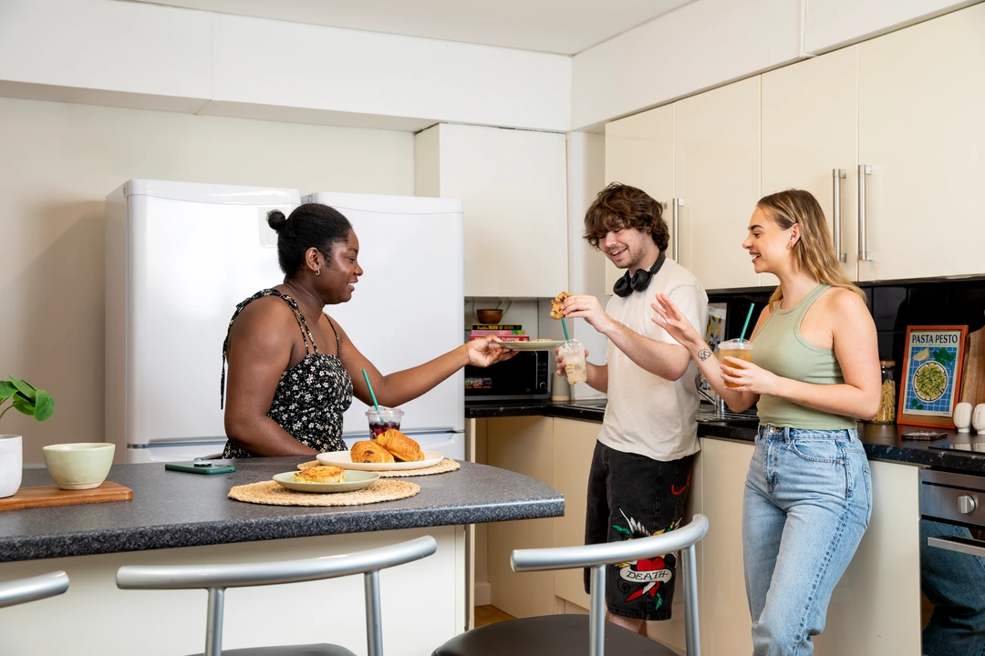 房间内部:涵盖 Classic Ensuite(4-6 人间)、Classic Studio、Premium Studio 三种房型,Ensuite 约 13㎡(独立卫浴 + 共享厨房),Studio 面积 16-18㎡(独立厨卫);均配 122×190cm 小双人床、超大书桌、定制衣柜 + 床底储物,厨房含烤箱 / 微波炉 / 冰箱,全屋高速 wifi + 暖气充足,隔音效果出色~
