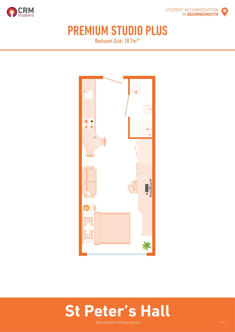 St Peter's Hall位于伯恩茅斯市中心,提供设施齐全的Studio房型,步行可达海滩与大学校区,公寓配备独立卫浴、健身房及电影室,生活便利且安全。