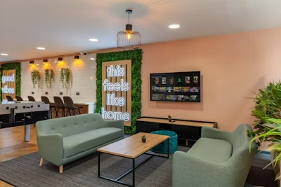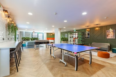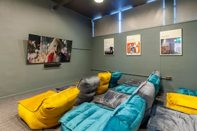 影音室:享受私人电影之夜或观看体育赛事;游戏中心:配备了台球桌、乒乓球桌和桌上足球桌,可以随时与室友进行友谊赛;公共休息区:配备舒适的沙发和电视,是日常放松和交流的理想场所。此外还设有独立学习隔间(私人学习包厢),是您专注学习、不受干扰的理想场所。