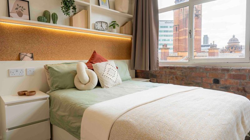 iQ Fletcher House 是曼彻斯特市中心极具特色的精品学生公寓,前身为历史悠久的仓库建筑(旧称 Warehouse One),2016 年建成后于 2019 年完成现代化翻新,将维多利亚风格的红砖外立面与高天花板、宽敞空间的复古优势,与现代居住需求完美融合。公寓共 4 层 41 个床位,主打铂金级高品质户型,涵盖一居室、两居室及双层复式两居室,所有房型均为全装修交付,配备双人床、独立书桌与大容量储物空间,部分房型自带独立洗衣机,生活便捷度拉满。