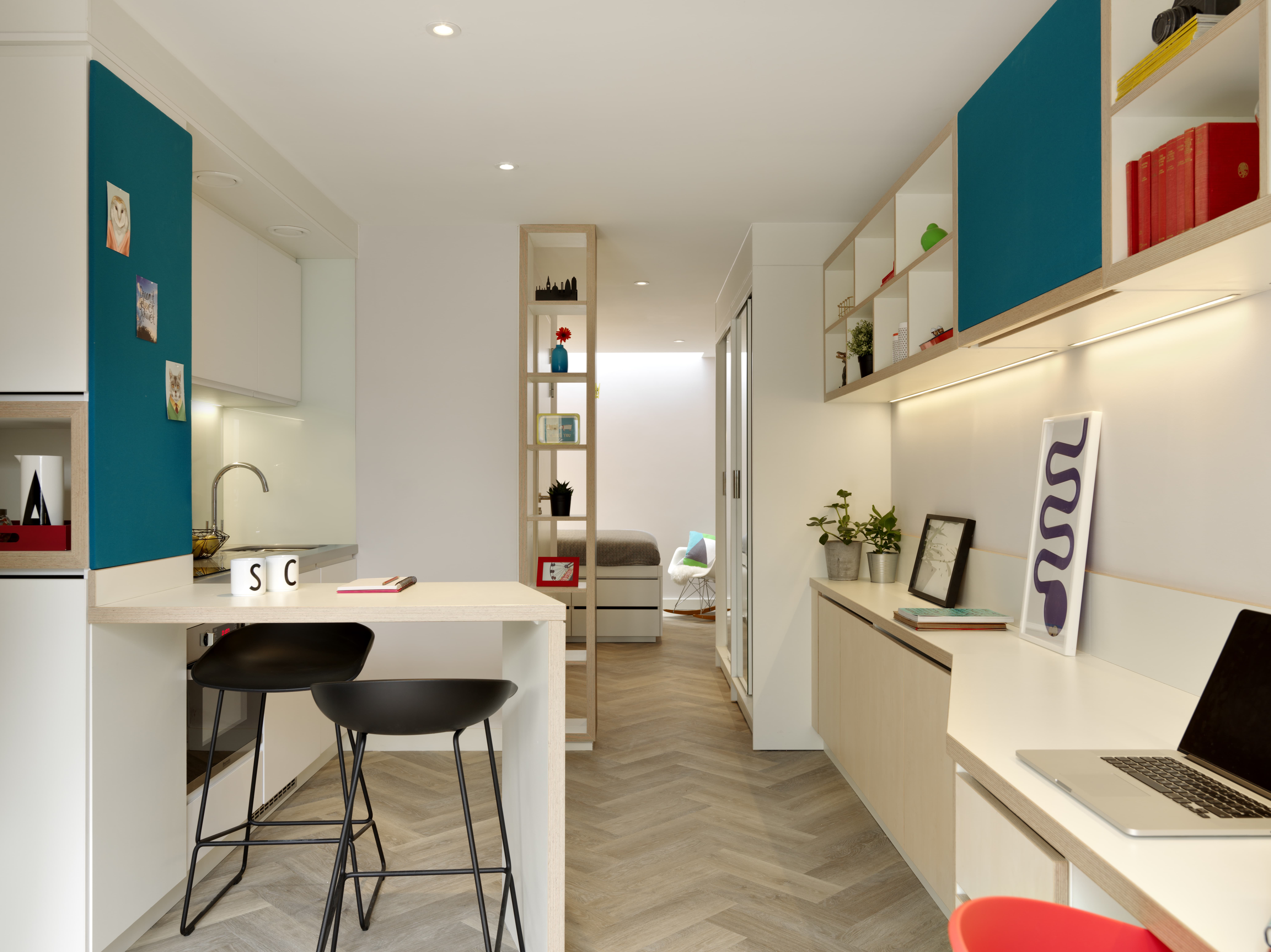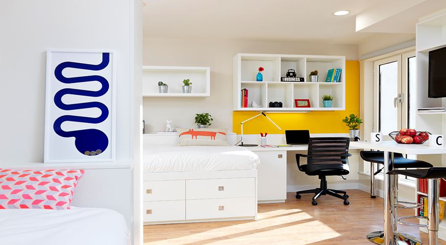 房间内部涵盖三种主流房型,满足不同居住需求。Twins 房型适合结伴留学的同学,两人共享一间房,在节省开支的同时,也能相互陪伴;Ensuite 房型则兼顾隐私与社交,每人拥有独立房间和专属卫浴,公共厨房成为结识好友、分享美食的社交空间;Studio 房型是独居首选,独立卫浴与独立厨房一应俱全,生活起居更加自由便捷。值得一提的是,Ensuite 和 Studio 房间内均配置双人床,搭配舒适床垫,为留学生提供优质睡眠体验,所有房间窗户均可正常开启,通风采光良好,冬季暖气充足,让居住更舒心。