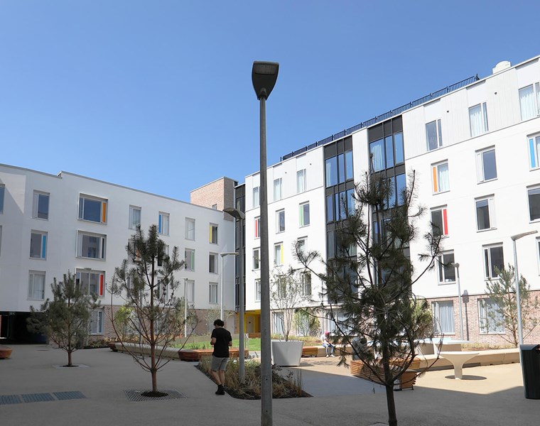 2016年建成,共5栋含446个床位,步行20分钟到圣三一大学,租金全包账单,配影院室与健身房,社交学习双便利。