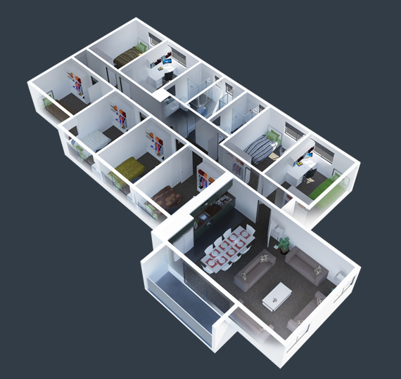 7个单间+2或3个卫浴。有多种租期,详情请咨询。
