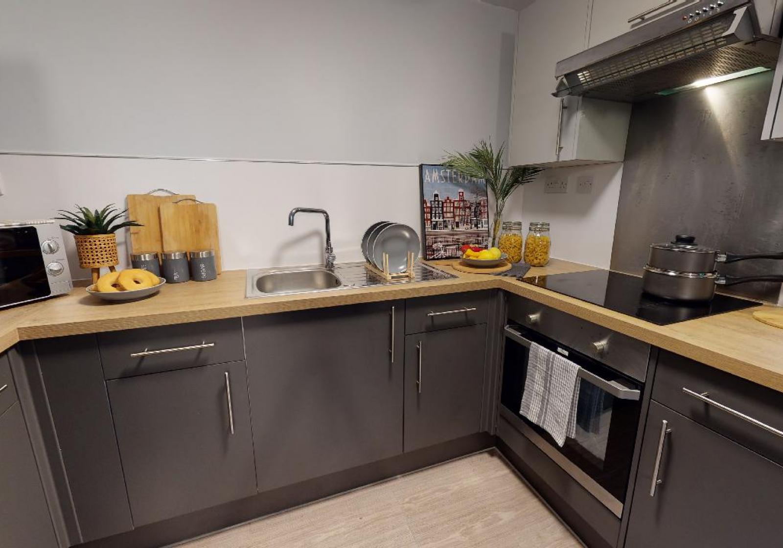 -Manchester Gardens 提供了多种房型以适应不同需求和预算,包括Non Ensuite、En Suite、Studio和One Bed Apartment。卧室通常配备书桌、衣柜、储物空间和椅子,厨房则配备了炉灶、烤箱、冰箱、微波炉等基本电器;租金已包含水费、电费、暖气费、高速WiFi及财产保险;房间内配备了暖气,让你能够温暖舒适地度过冬天。