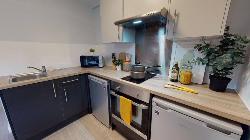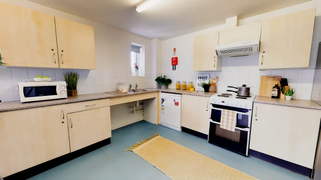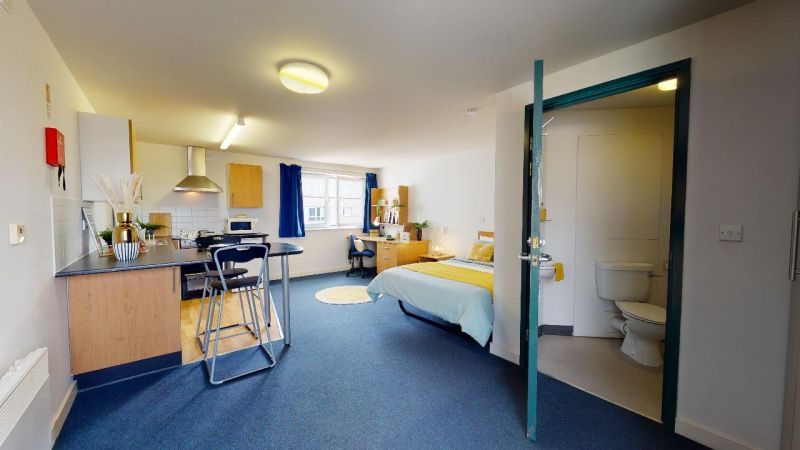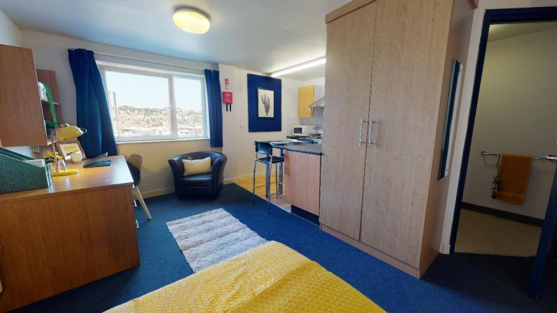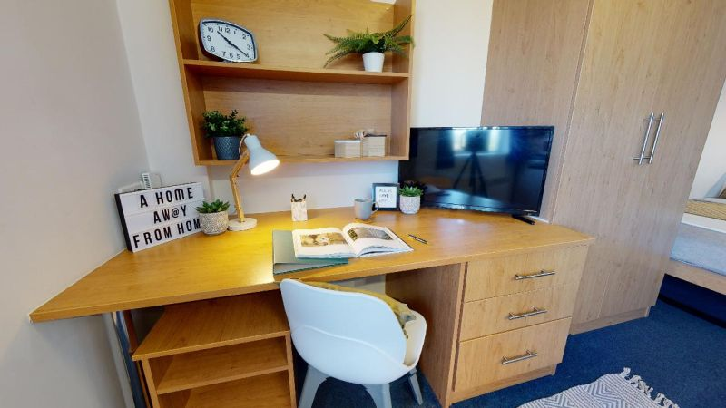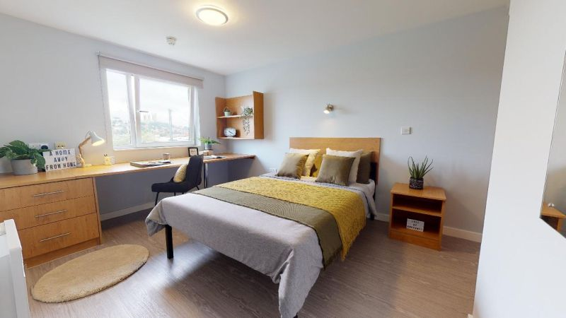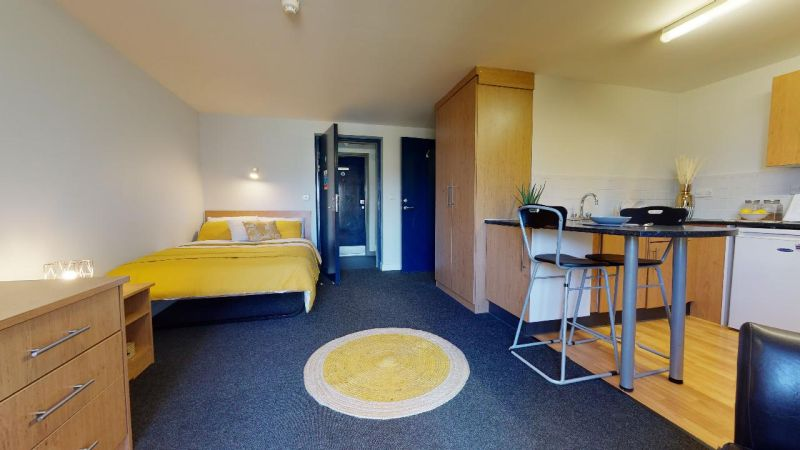 房间配备双人床、独立卫浴、带烤箱和微波炉的小厨房、充足的储物空间、书桌椅和舒适的座椅。大楼内设有宽敞的公共空间,您也可以与朋友们尽情放松。具体房间面积,可咨询顾问