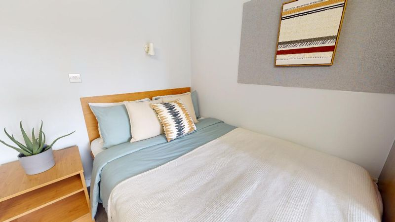 宽敞的房间配有独立卫浴、小型双人床、书桌椅以及充足的储物空间。您还与室友共用厨房和带电视的起居室,享受共享的社交体验。具体房间面积,可咨询顾问