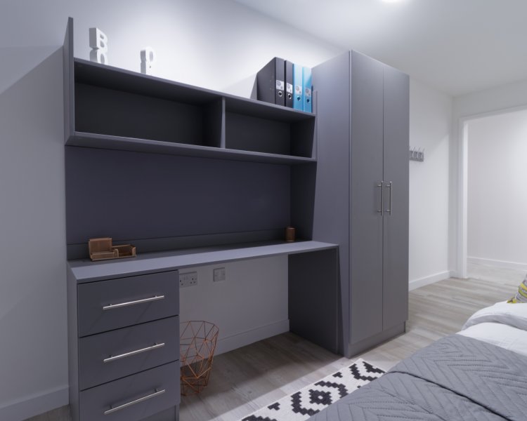 Ensuite 房型:主打 3-5 人间合租模式,每个房间均配备独立卫浴,保障个人隐私与使用便捷性。房间内配置舒适单人床、大容量衣柜及书桌书架,满足休息与学习双重需求。合租伙伴共享开阔厨房与公共活动空间,厨房配备全套厨具、冰箱、烤箱等设备,适合喜欢社交、希望结识同学生活的留学生,兼顾性价比与集体氛围。Studio 房型:为追求独立空间的留学生量身打造,采用开放式布局,将睡眠区、学习区与烹饪区巧妙融合。房间空间宽敞,配备舒适床具、壁挂式储物柜及嵌入式厨房,厨具齐全可自主烹饪;独立卫浴设施干净整洁,超大床下储物空间与墙面收纳设计,轻松解决物品存放问题,适合注重私密、喜欢安静独立生活节奏的同学。