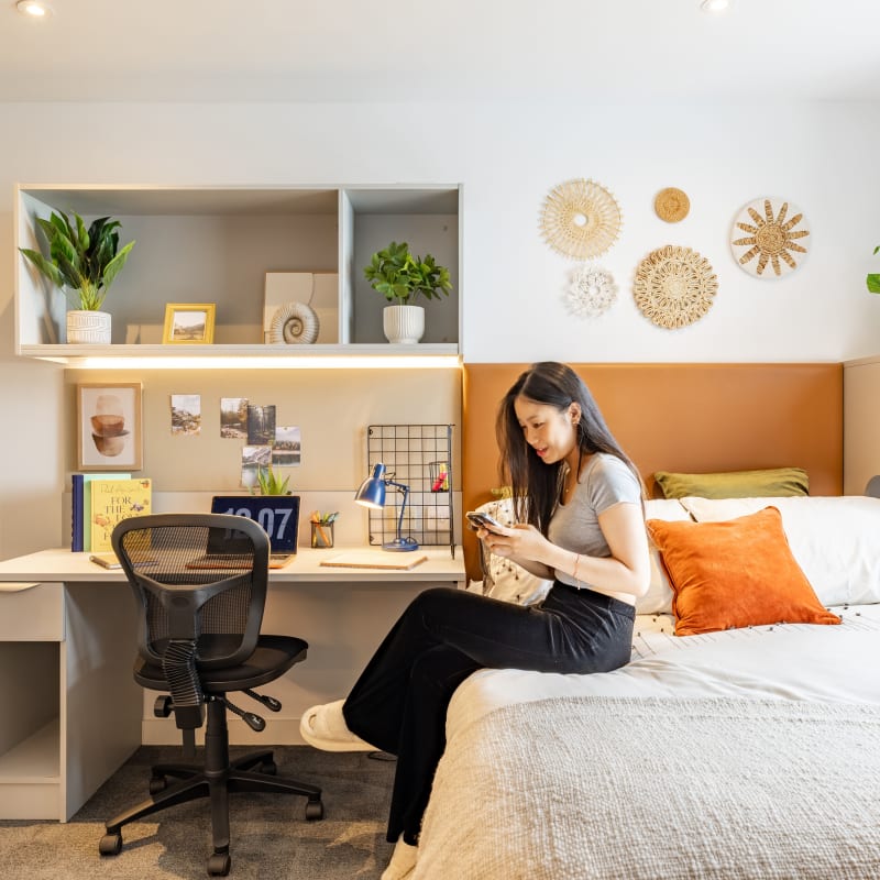 房间全新装修,全套家具配齐,温馨舒适又宜居。所有房型都有 24 小时热水,免费 WiFi 全覆盖,居住体验拉满。公寓安保措施严密,24 小时门禁、安保人员和监控全方位守护安全。公共区域丰富多样,健身房、电影放映室、自习室、娱乐区一应俱全,满足学习与休闲需求;还有洗衣房、电梯、无障碍设施、自行车库和停车位,日常出行无忧。