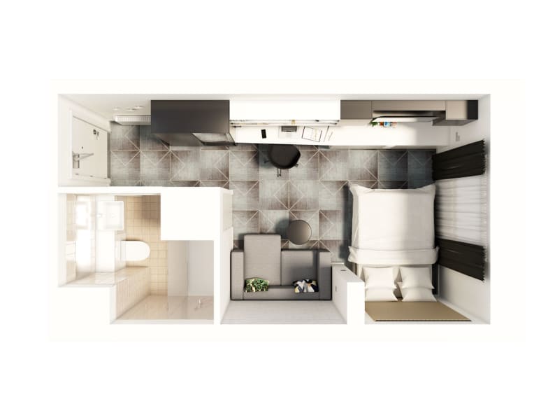 公寓每个房型都配备独立卫浴、淋浴花洒、带床垫的双人床、智能电视、全身镜和沙发,回到房间就是放松的开始。