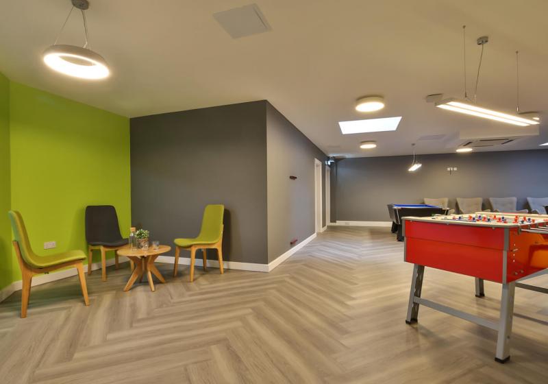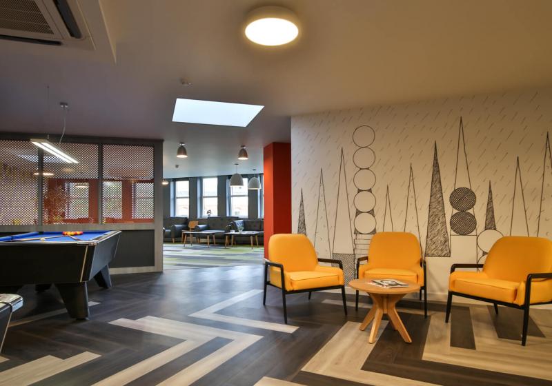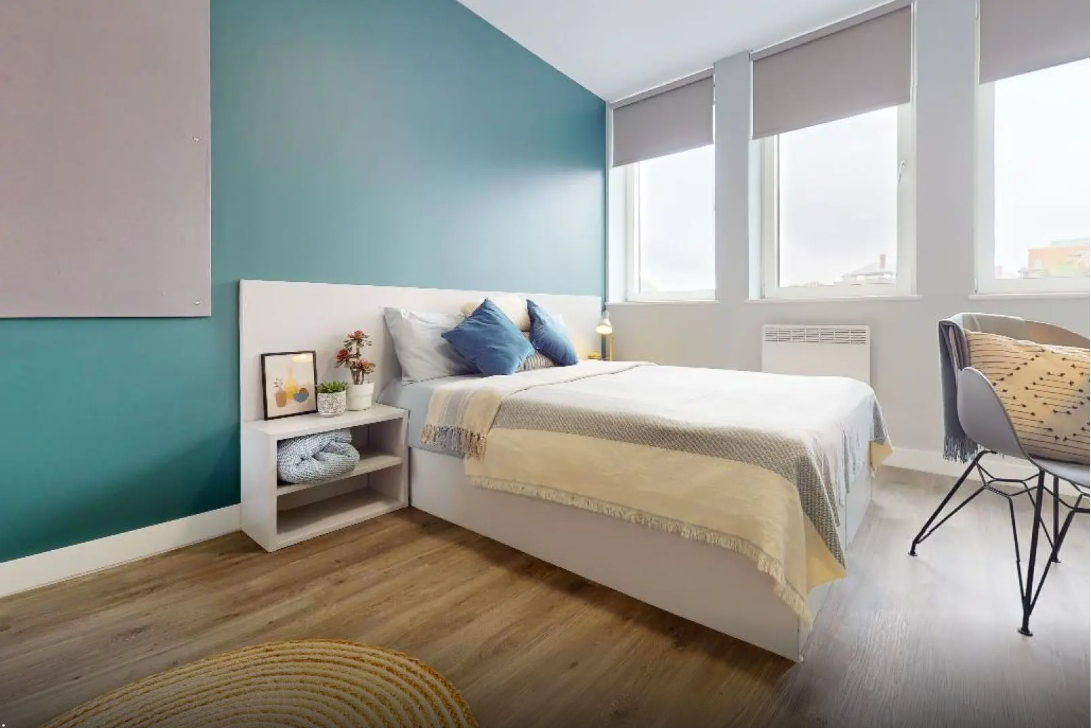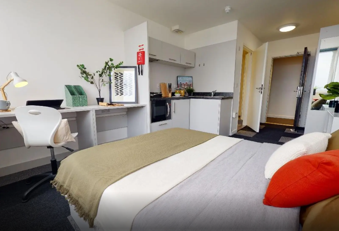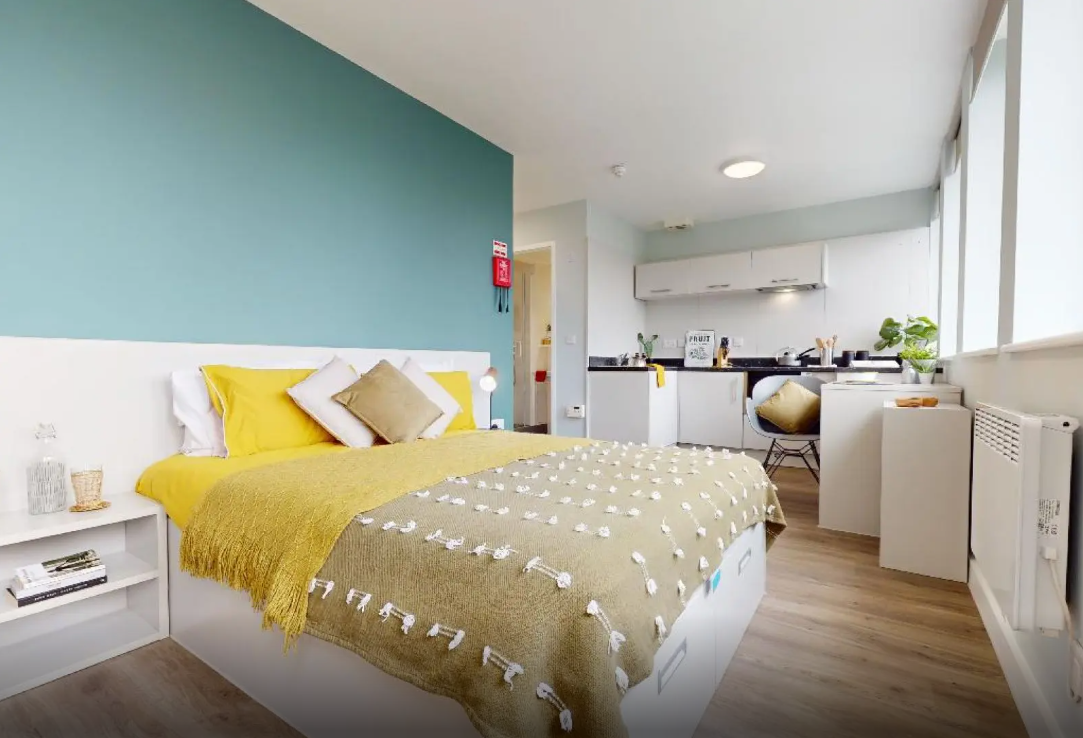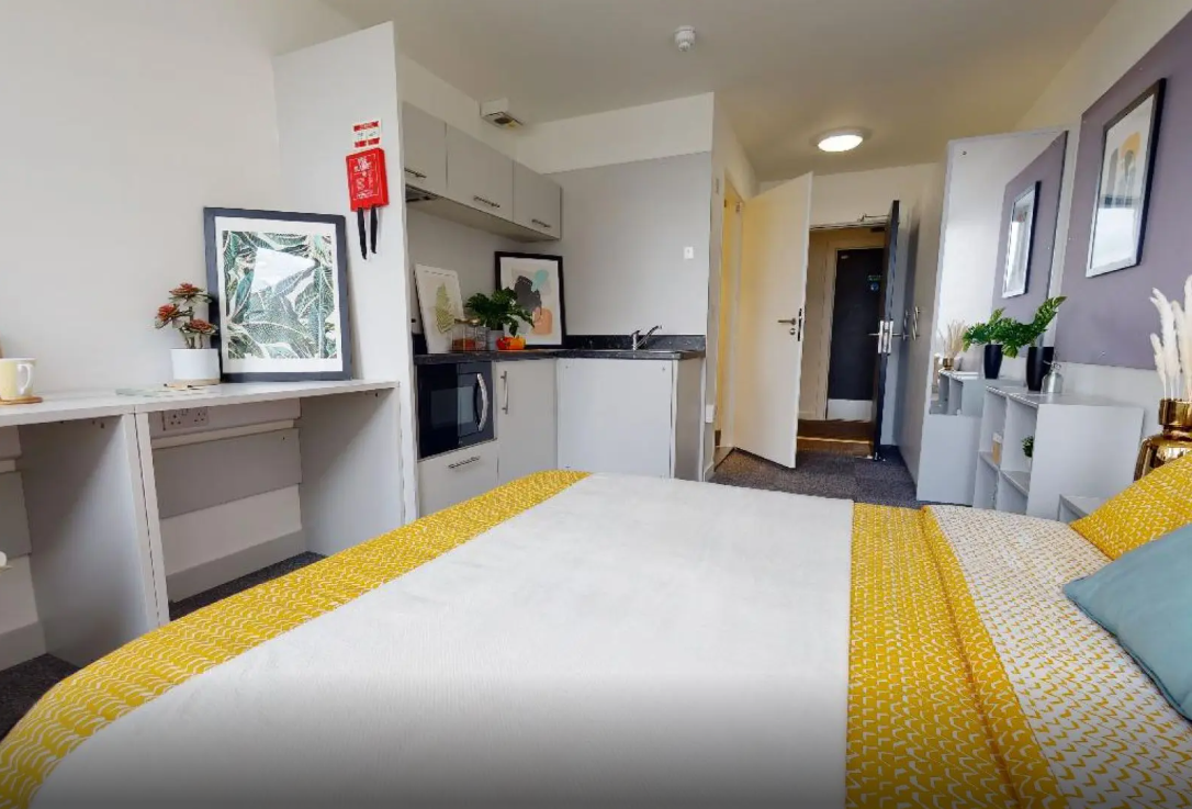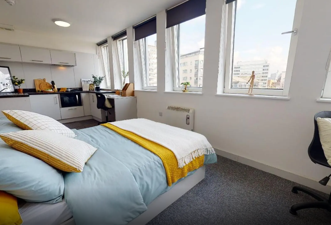 许多房间享有绝佳视野,俯瞰诺丁汉城堡。多面窗户提供了充足的自然光线,时尚简约设计风格的房间拥有充足的存储空间和学习空间。公寓楼内还提供了带有电视和台球桌的巨大社交空间,以及内部健身房等设施福利。