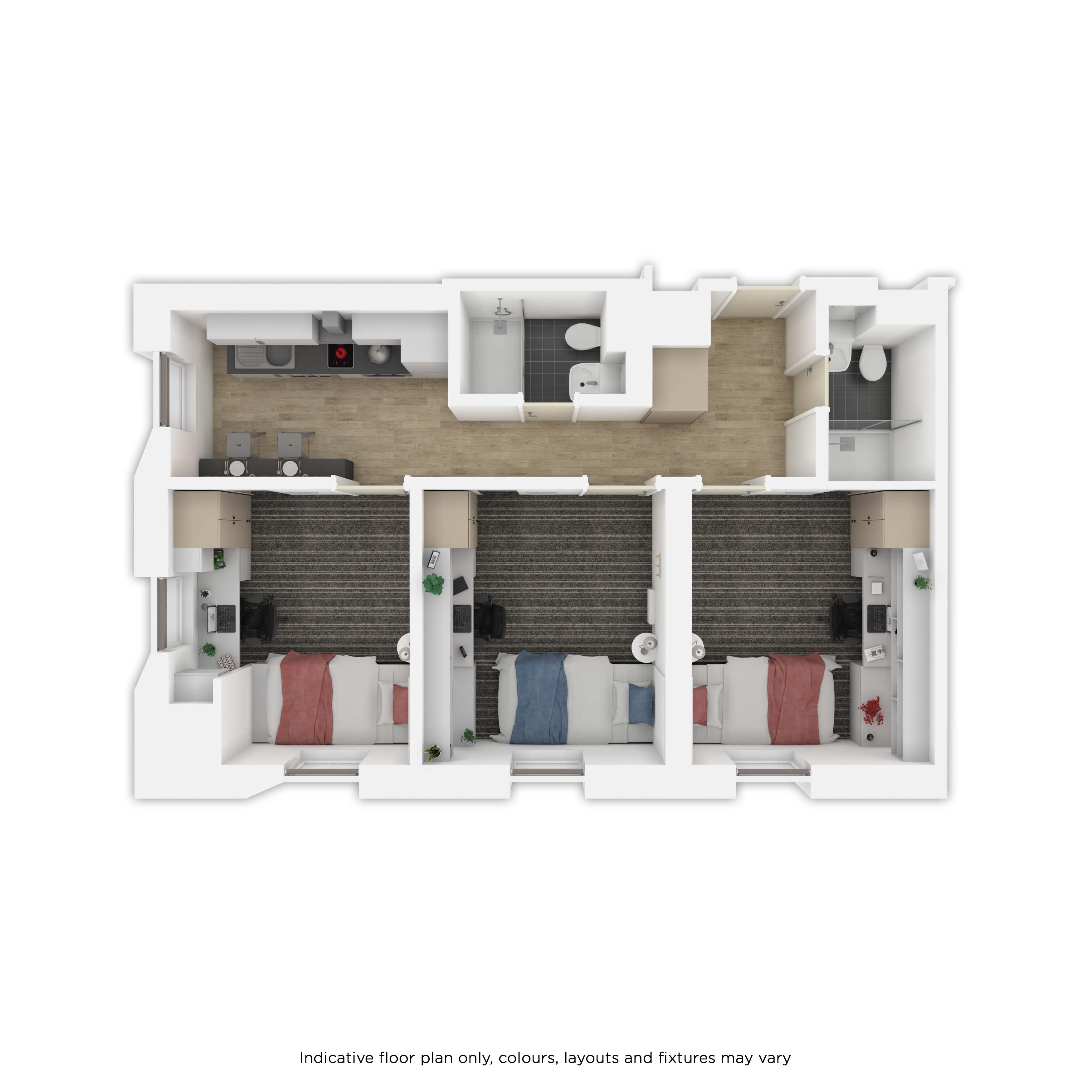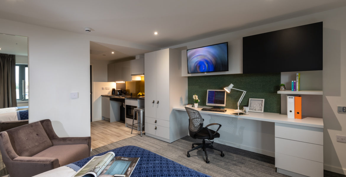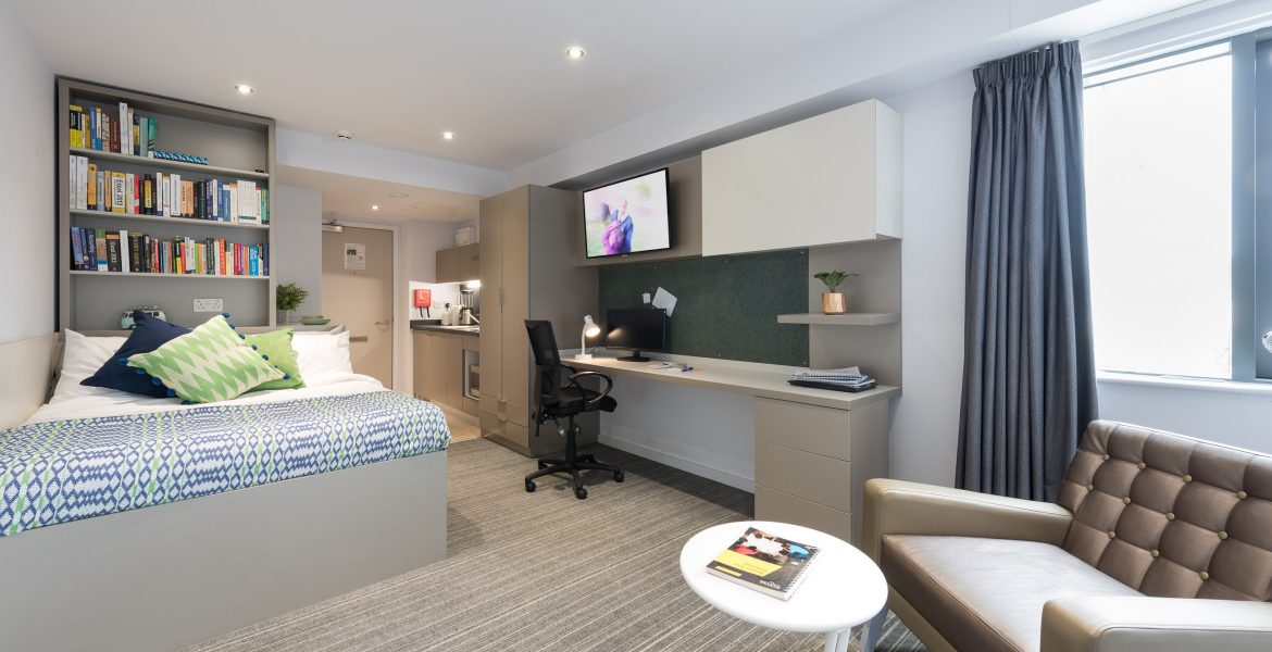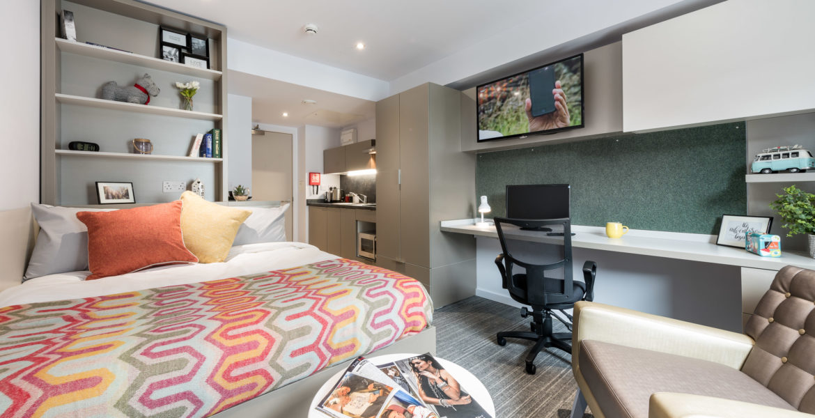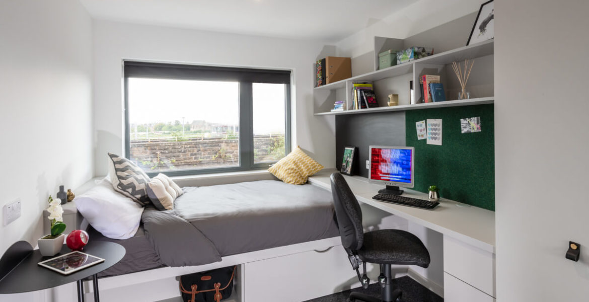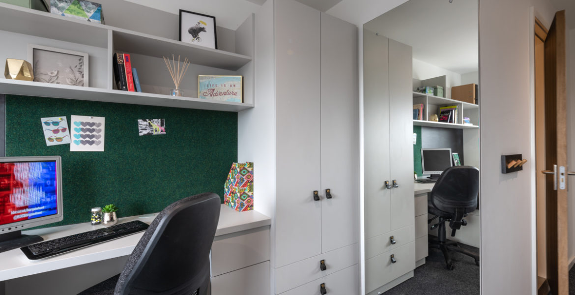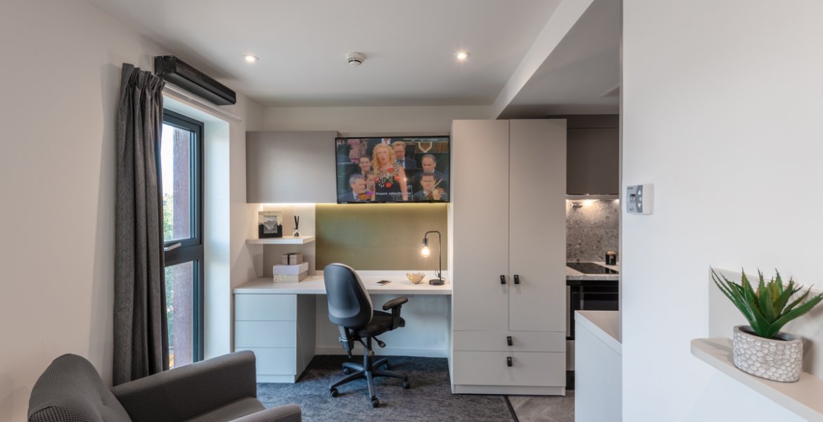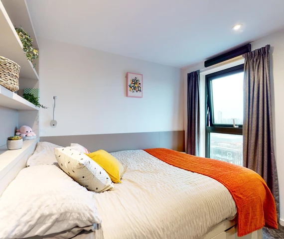 房间内部涵盖三类主流房型,适配不同居住需求。Non-ensuite 单间分为 2 人间和 3 人间,均有基础款与豪华型可选,室友数量适中,共享空间温馨;Ensuite 合租公寓为多人共享厨房的户型,从标准到高级豪华款配置不等,私密卧室搭配公共活动区域;Studio 独立公寓则是独立厨卫的户型,空间宽敞,私密性强,学习休息互不干扰。所有房型均配备舒适床具、暖气及基础生活设施,居住体验舒心。