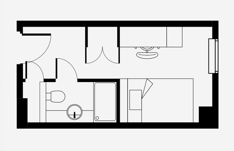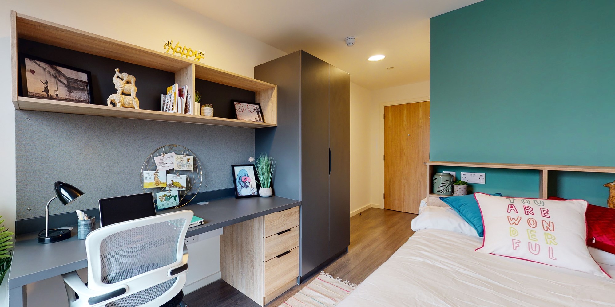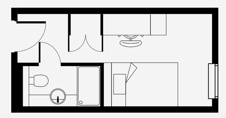 房间内部主打实用舒适,Studio 与 En-suite 房型可选,面积 15-25㎡不等,空间利用率高。配备 1.2 米单人床(舒适不拥挤),窗户可自由开启通风,冬季暖气充足(室温稳定 20℃+),部分房型带小阳台,采光通透。独立卫浴干净整洁,厨房区域设施齐全,满足简单烹饪需求。