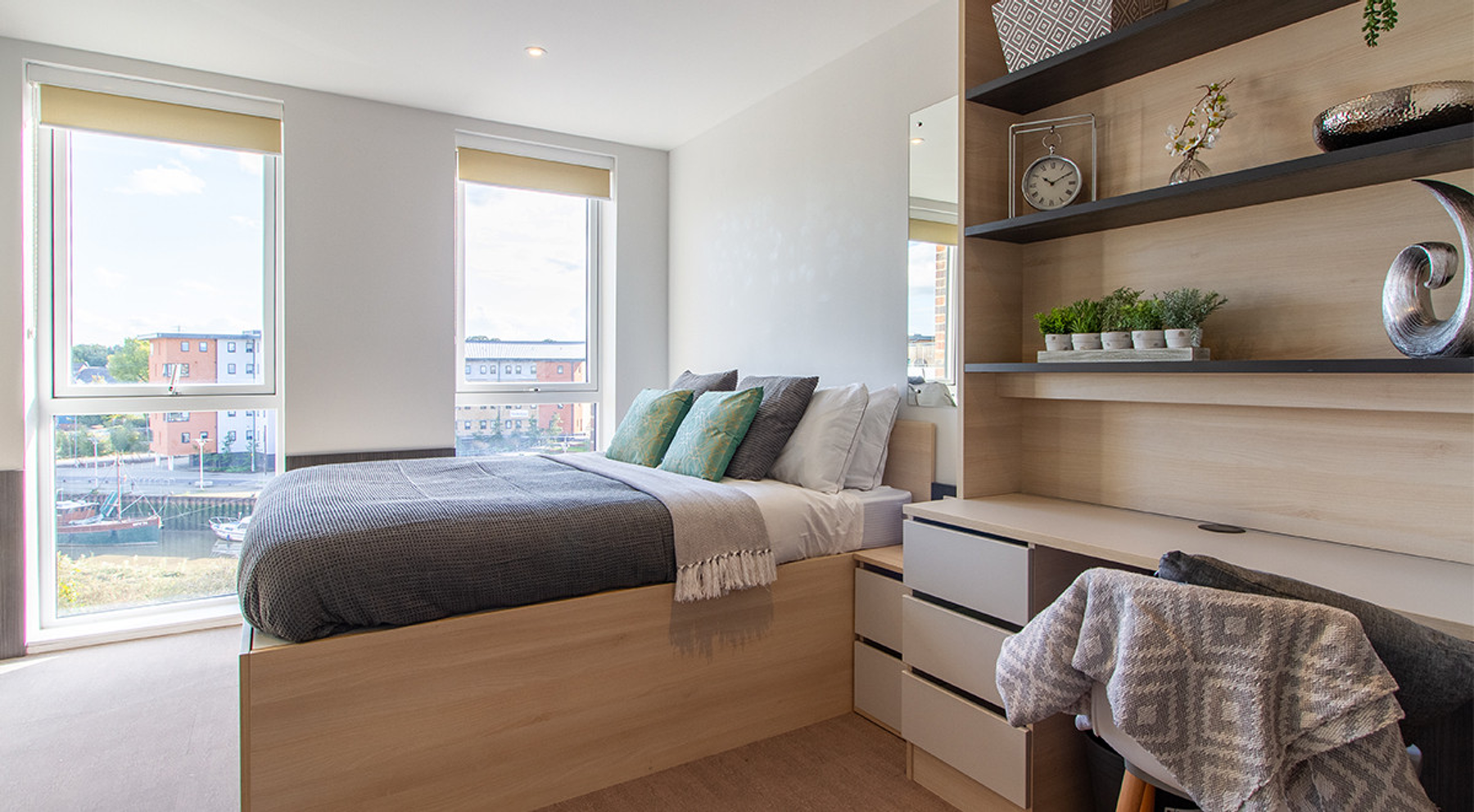 Hythe Mills 公寓靠近科恩河,埃塞克斯大学, 火车站,购物中心,公寓内部设施精致高档,每个房间都有空调,周边生活交通便利。