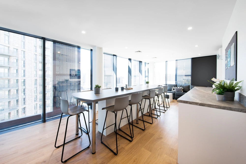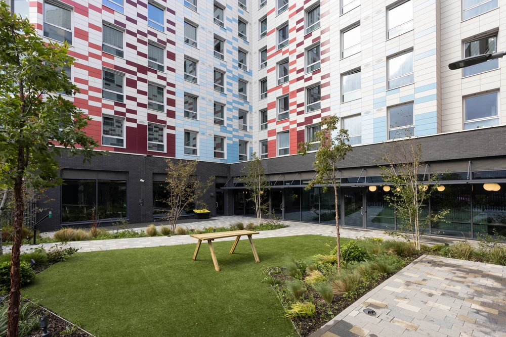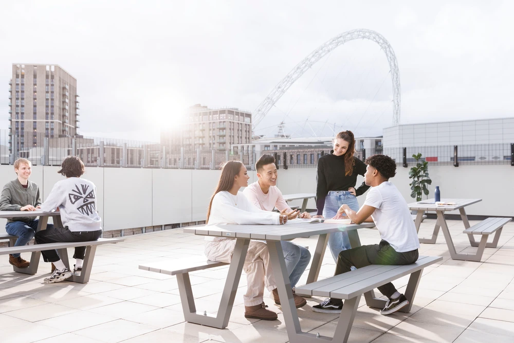 - 特色设施:健身房让健身爱好者随时释放活力;温馨的影院室,是周末观影放松的绝佳选择;屋顶露台可俯瞰温布利球场全景与伦敦天际线;庭院则适合午后晒太阳、聊天小聚。学习设施更是诚意满满,设有无声自习室满足从独立钻研到团队讨论的各类需求,赶 due效率直接翻倍。
