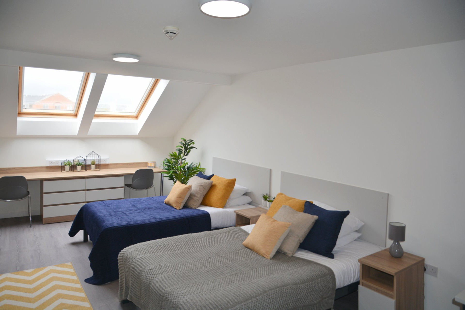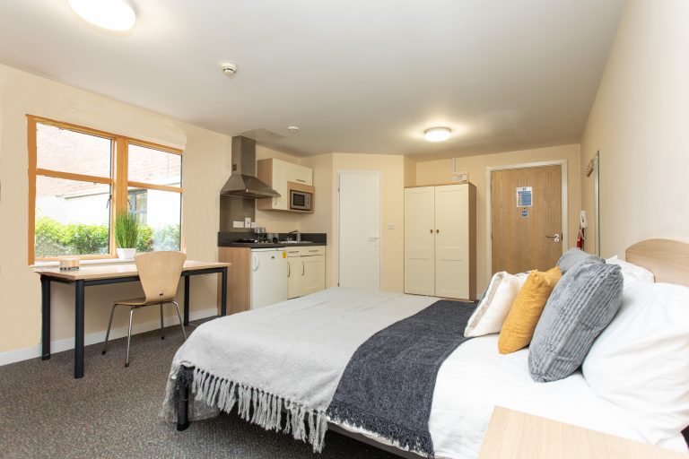 公寓为学生提供En-suite(独立卫浴公用厨房)房型和Studio(独立卫浴独立厨房)房型。房间内实现了全WiFi覆盖,并且拥有足够的储物空间。公寓房间内部配备了基本的设施,例如,沙发、床(含床垫)、窗帘、学习桌等,厨房内提供冰箱、微波炉、烤箱、等设施。寓内还配有公共休息区、健身房、学习区、游戏室等。公寓租金包含了所有的费用,例如:水、电、气、wifi、财产保险费等。