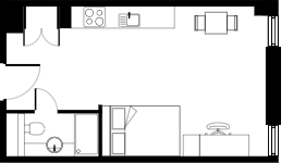 房间配备全套家具、独立卫浴、书桌及设备齐全的厨房(Studio房型含私人厨房)。暖气、热水与200Mbps高速Wi-Fi全覆盖。