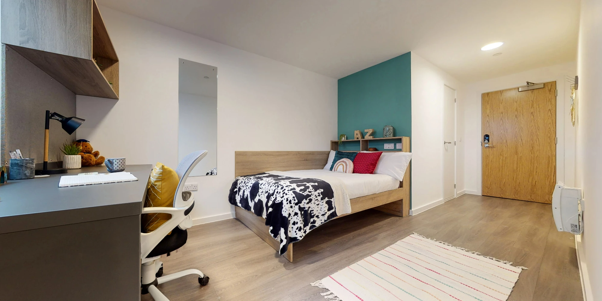 房间 14-14.5㎡,有铂、金、铜级独立卫浴房型,4-7 人共享厨房,配小双人床、书桌及储物空间。公寓含健身房、自习区、屋顶露台等,24 小时团队值守 + 维修服务,还有 resident 活动、包裹存储,APP 可预约清洁,福利支持完善。