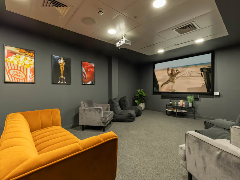 娱乐类:影院室(配 55 寸投影 + 环绕音响,每周举办电影夜,需提前预约)、Sky lounge(高空景观休闲厅,配沙发 + 桌游,适合放松聊天)、泳池桌(24 小时开放,免费使用,随时组队玩);