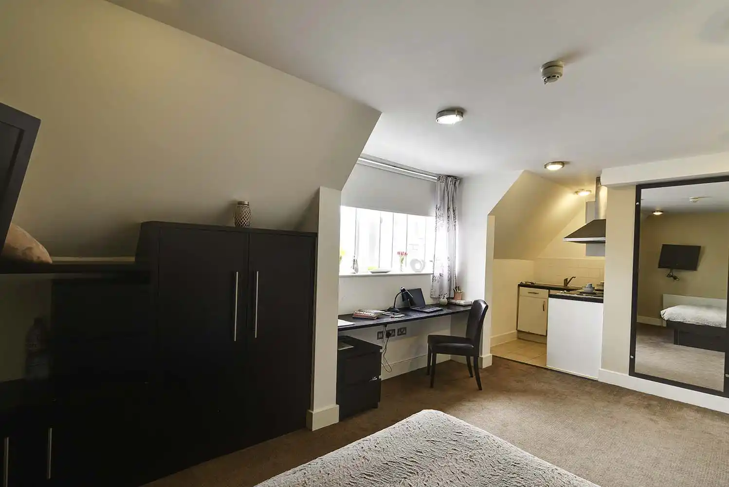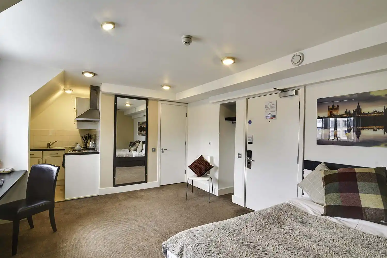 公寓位于伦敦市中心一区,全新装修的学生公寓,每套公寓都配备独立厨房,卫浴,电视,免费无线网络。