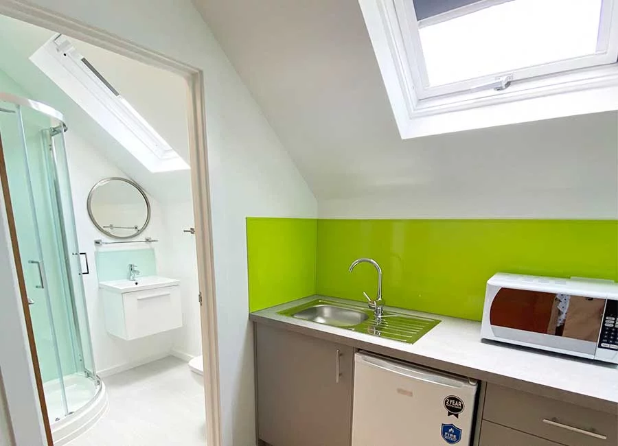 房型有studio、En-suite及一居室公寓,空间宽敞。均配舒适睡床、独立卫浴与可开大窗,采光极佳,Studio带独立厨房,书桌与储物空间充足,暖气供应稳定。