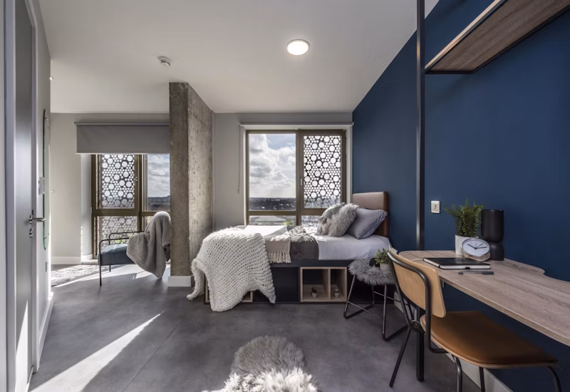 The Vantage是诺丁汉市中心豪华型高适配学生社区,双校通勤无压力,租金含水电、400Mbps 高速 WiFi、 财产保险,无隐性收费;全房型标配空调(诺丁汉学生公寓少见),夏季学习不闷热,网络下载大型设计文件无卡顿;双健身房免费使用(有氧 + 力量器材齐全),生活成本与品质兼顾;特别适合诺丁汉特伦特大学、诺丁汉大学的本科生与研究生,尤其适配需要空调、重视通勤效率的国际生及高端预算群体。