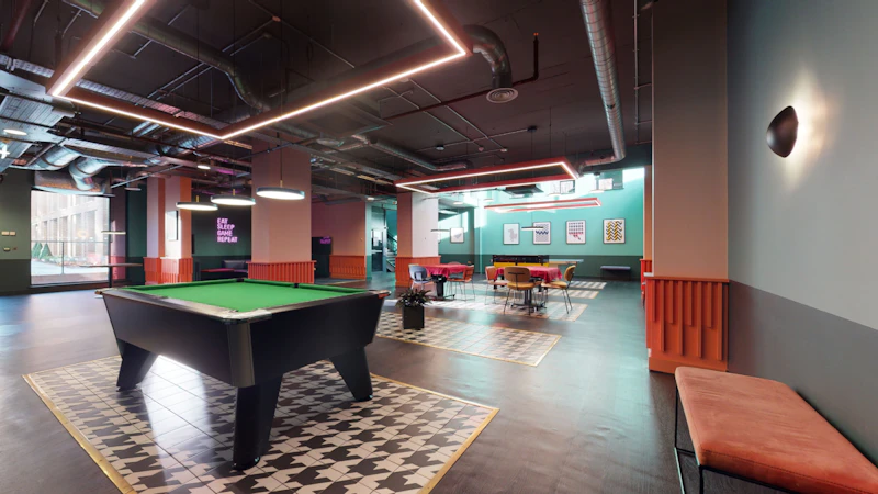 公寓配套设施齐全,提供游戏室、复古街机游戏、全规格影院室、私人餐厅、空中休息室、迷你高尔夫球场、自习室和共享办公空间、舒适的休息区等,周边生活交通便利