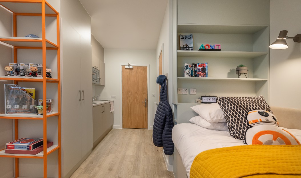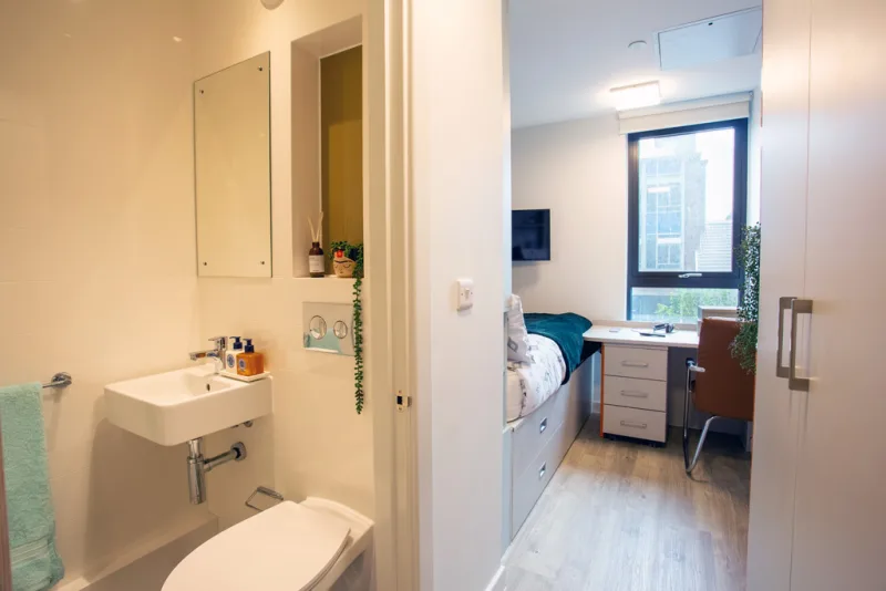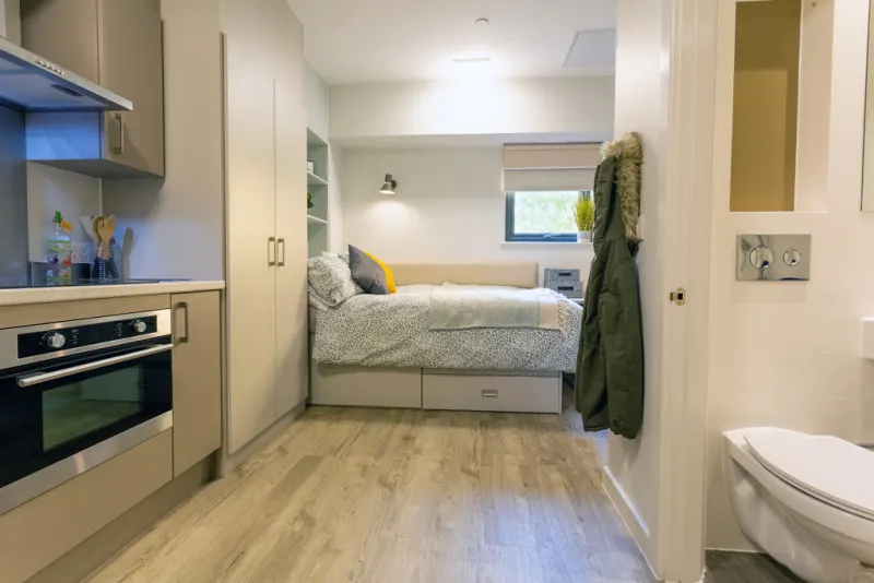 房间内部涵盖多样房型,满足不同居住需求。Ensuite 为 6-12 人间,每间均带独立卫浴,厨房共享,适合喜欢社交的同学;Studio 房型拥有独立卫浴与独立厨房,空间私密自主;Club Studio 除房间内厨房外,还配备公用厨房,兼顾私密与共享。所有房型均配备全套家具,床型舒适,窗户可正常开启,暖气供应充足,居住体验舒适。公寓配套设施丰富完善,生活服务贴心周到。24 小时安全门禁、安保人员及监控系统,全方位保障居住安全;24 小时热水供应,日常洗漱无顾虑。设有洗衣房、电梯、无障碍设施,满足不同生活需求;专属维修团队响应及时,解决居住难题。娱乐休闲方面,配备健身房、游戏室、电影放映室、卡拉 ok 室与屋顶露台,闲暇时光可尽情放松;提供有线电视、保洁服务与保险,居住更省心。
