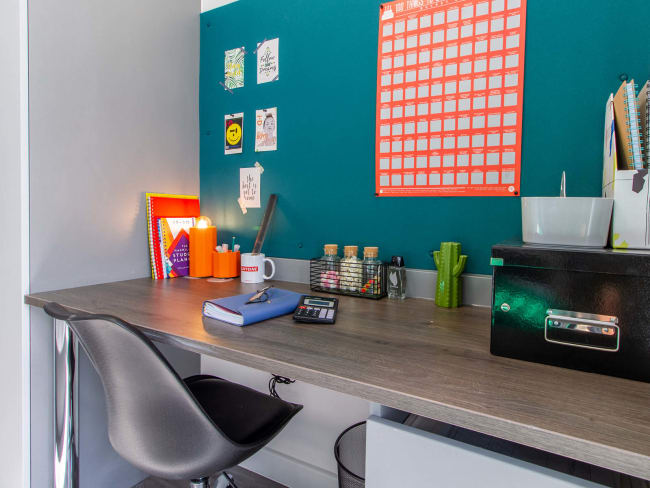 公寓涵盖多种热门房型,满足不同居住需求。Ensuite 房型为 4-6 人间,每间卧室均配备舒适单人床、书桌、衣柜等全套家具,共享宽敞厨房与客厅,适合喜欢社交的同学;Studio 房型则提供独立厨卫空间,私密感更强,床型贴合人体工学,搭配充足储物空间,书桌区域采光良好,为独立学习与生活提供便利。所有房间均有可开启窗户,通风条件优越,暖气供应充足,24 小时热水随时可用,保障舒适居住体验。