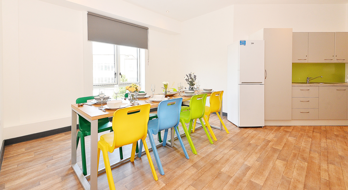 Plymouth Cross House在普利茅斯的学生住宿为学生提供了宽敞的Studio或现代化的共享ensuite房型;房间内部设施:小型双人床,桌子,干湿分离的卫生间,厨房设施。包水电费及网费;共享厨房设备齐全,冰箱、烤箱、电磁炉都有,看起来也干净。橱柜每人有分好格子的。