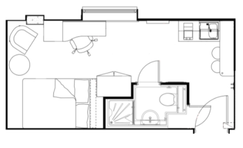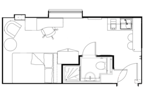 提供两类核心房型:ensuite 房型配备独立卫浴与共用厨房,适合热爱社交、乐于分享的学生;studio 房型拥有独立卫浴与独立厨房,私人空间充足,支持双人入住,适配偏好安静独居的同学。