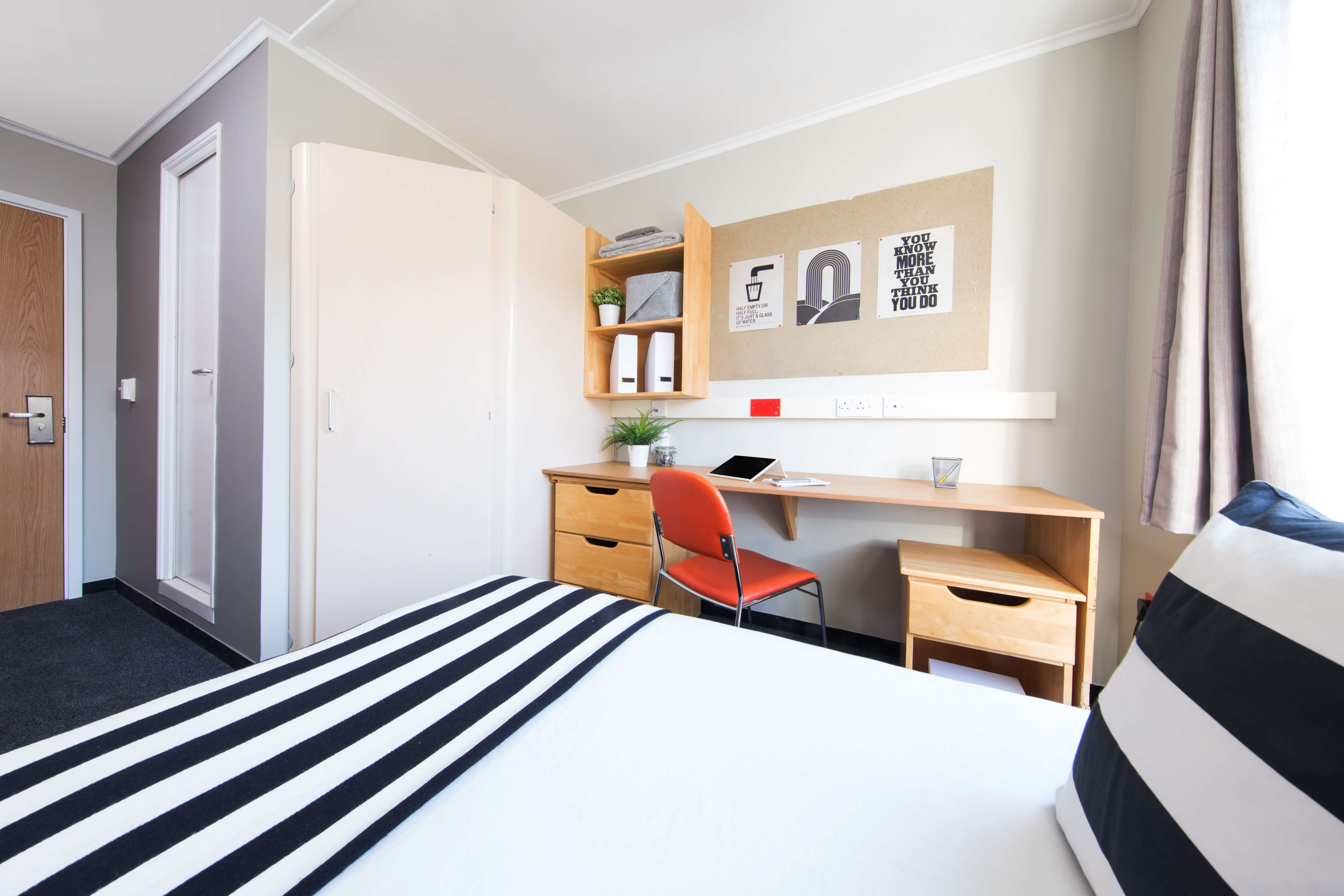 公寓主要提供单人间,床型为标准单人床,配有书桌椅和衣柜。房型特色:大部分房型应为拥有独立卧室、共享厨房和公共区域的En-suite房型,是结识新朋友的好选择。