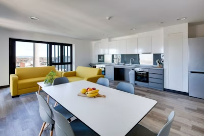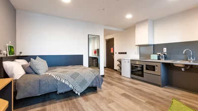 2020年全新建成,核心优势是 “新楼设施 + 近校便捷”,房型含 ensuite(3-5 人间)与 studio,满足独自或结伴居住需求,配置贴合留学生日常习惯。