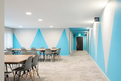 公寓设施:24 小时前台值守,包裹代收、日常维修响应及时;公共区有中型健身房(跑步机、哑铃、瑜伽垫等器械齐全)、自习室(配台灯和充电插座,赶 due 超合适)与休闲区(带沙发、电视和桌游,可约同学小聚);每周 1 次公共区域清洁,居住环境清爽不杂乱。