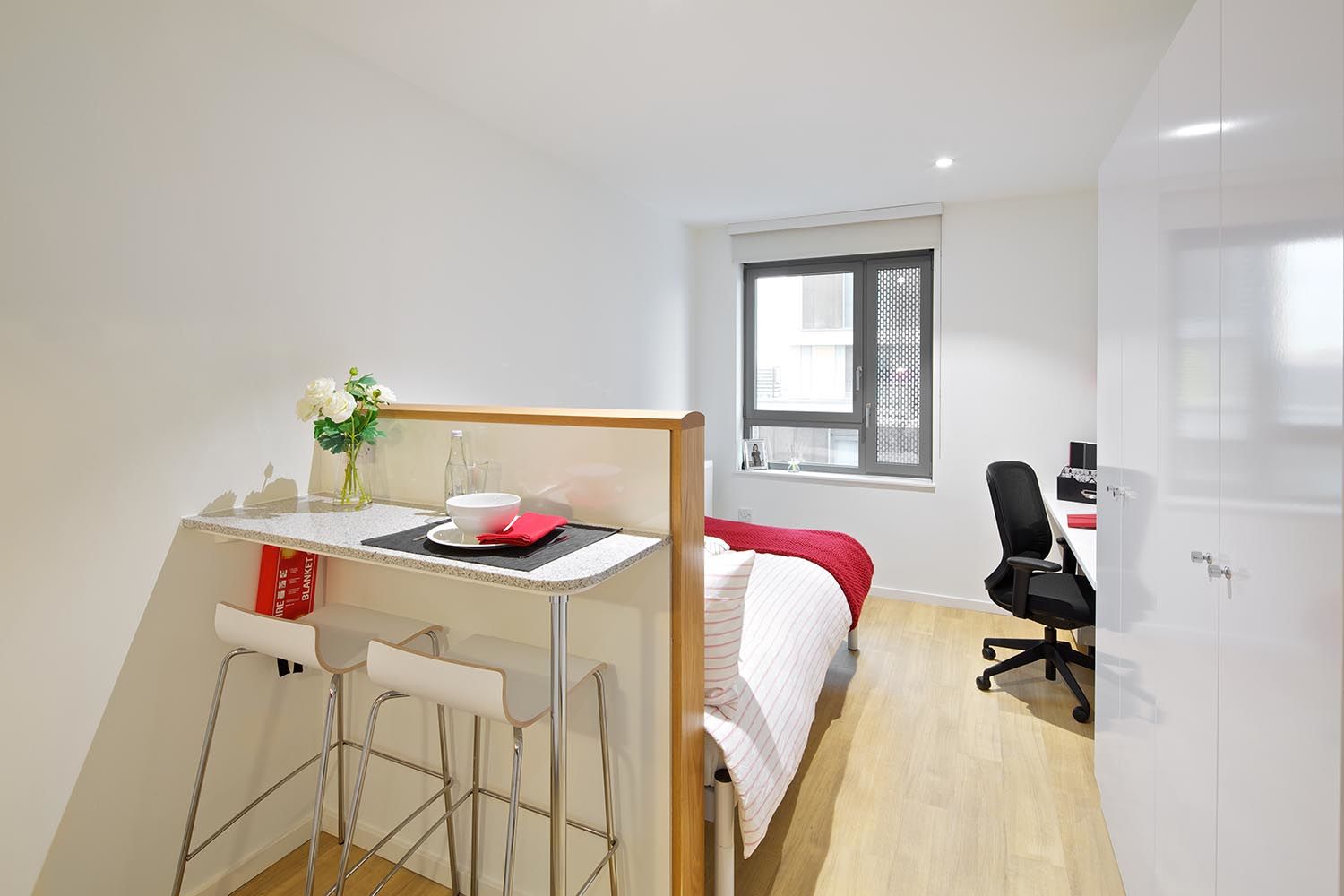 公寓位于伦敦White City,步行约5分钟可达White City地铁站,这里专为研究生打造,全部是带独立厨房和卫浴的Studio房型,让你能安心经营自己的小日子,租金包含了水、电、网及暖气费,生活省心。