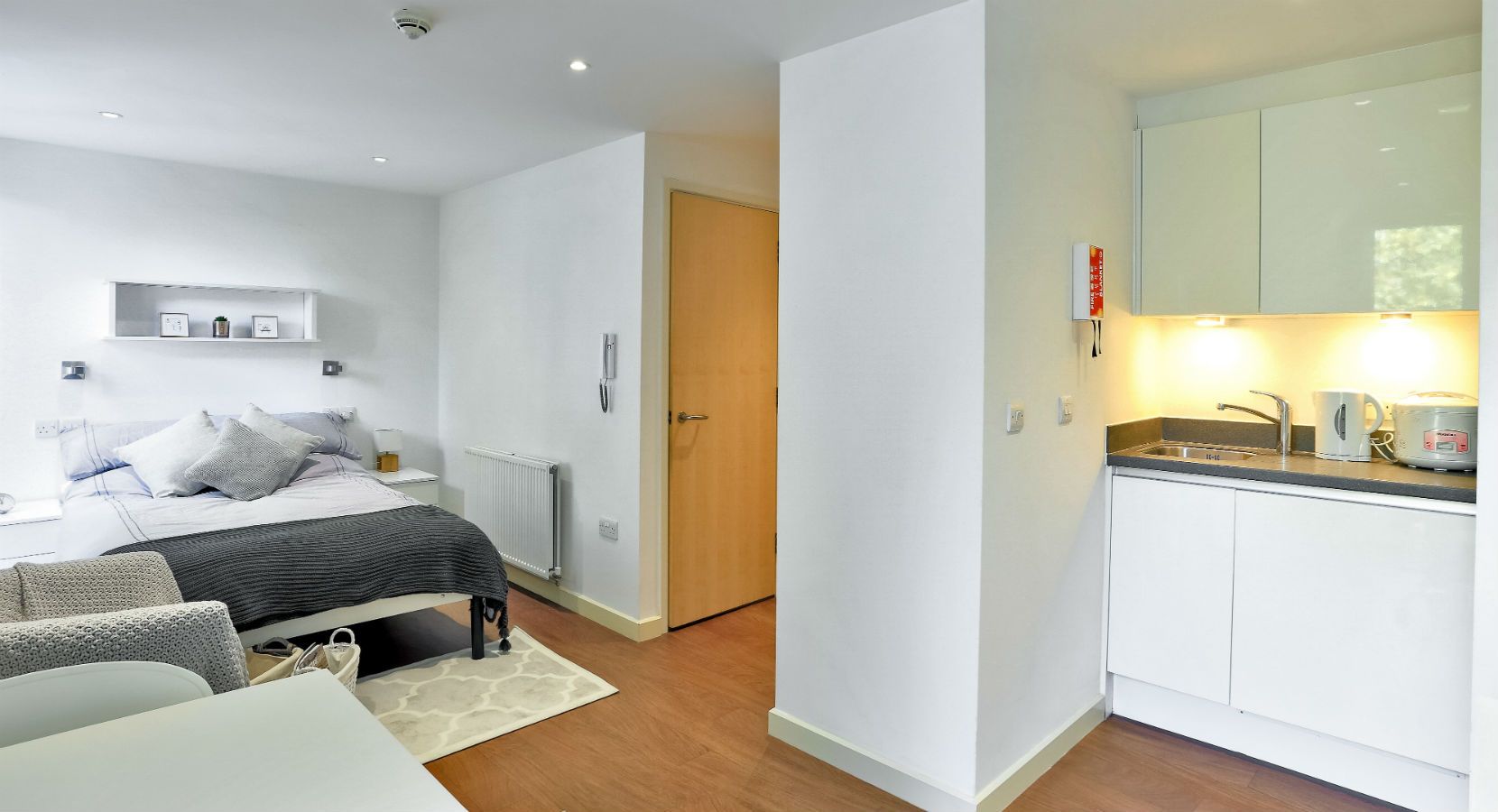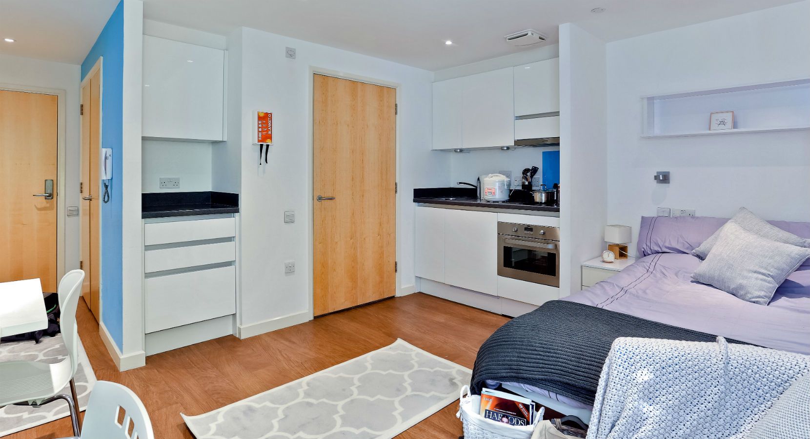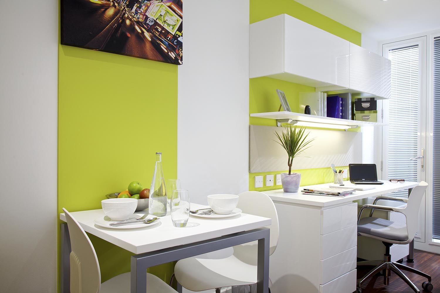 -Griffon Studios提供多种Studio房型(一种包含独立卫浴和独立厨房的开间式公寓),m面积适合单人居住。所有房间均配备标准双人床,搭配高品质床垫与床头收纳柜,为疲惫的学习生活提供充足的睡眠保障。房间窗户均为可开启设计,清晨推开窗就能拥抱格林威治的新鲜空气与和煦阳光,让一天都充满活力;冬季有高效集中供暖系统持续供暖,即便伦敦的湿冷寒冬也能暖意融融。