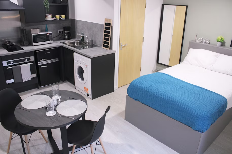 Studio:自带独立厨房、浴室和起居空间,隐私性拉满,独居党能享受完全自由的作息,不用迁就他人,学习休息更自在。