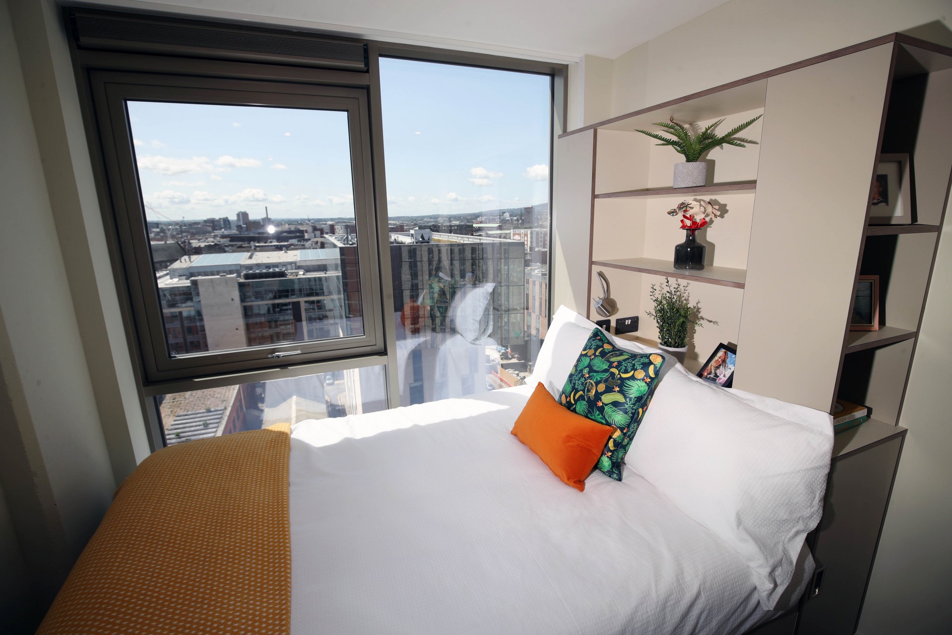 LIV Belfast扎根贝尔法斯特市中心繁华地段,属于那种“闹中取静”的选址——步行几分钟就能到主街,但公寓所在的街道又不会太嘈杂,适合学习和休息兼顾的留学生。整体风格偏现代,安保很到位,门禁和24小时前台让人挺有安全感。