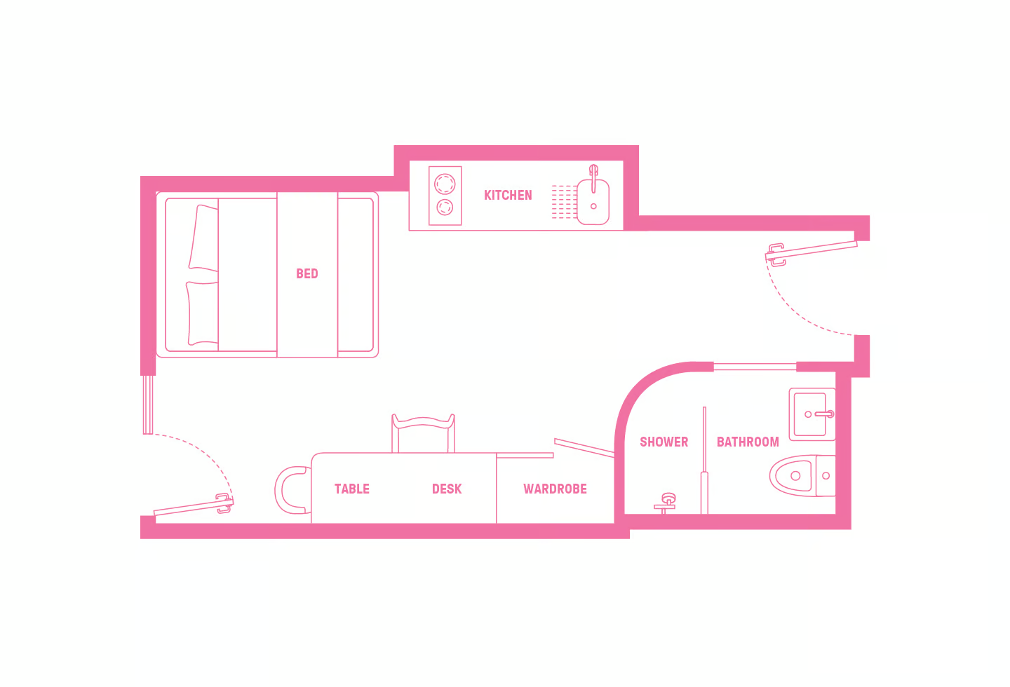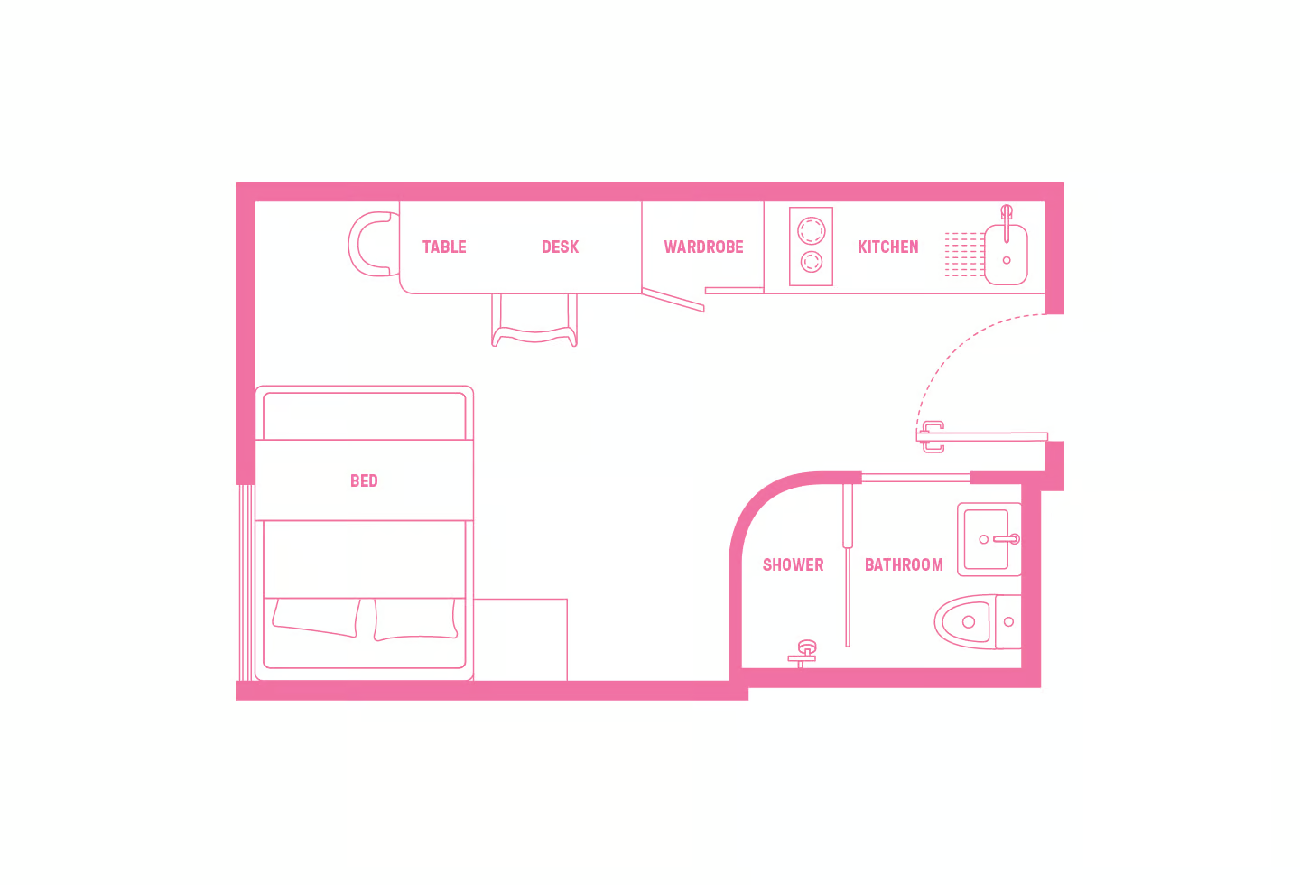 只提供Studio房型,均配备舒适床垫、储物空间和充足采光,独立厨房,自在烹饪不打扰。