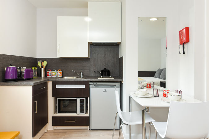 房间内部:ensuite和studio房型均配备舒适小双人床、充足储物空间和全套家具,窗户可开启通风,暖气保障冬日温暖。设计注重实用与私密,满足你的日常需求。