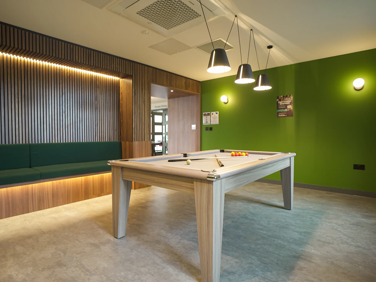 公共设施齐全,楼内配备公共休息室、先进的健身房、观影室和洗衣房、台球桌等便利设施,满足学生的日常生活需求。