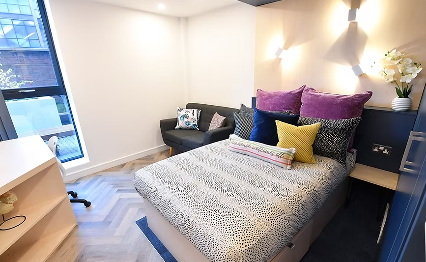 The Orchard 是莱斯特一间潮流感十足的学生公寓,地理位置堪称 “DMU 学生福音”——就在德蒙福特大学(DMU)校园边,步行3分钟直达教学楼,早八课踩点出门都能稳稳坐进教室;