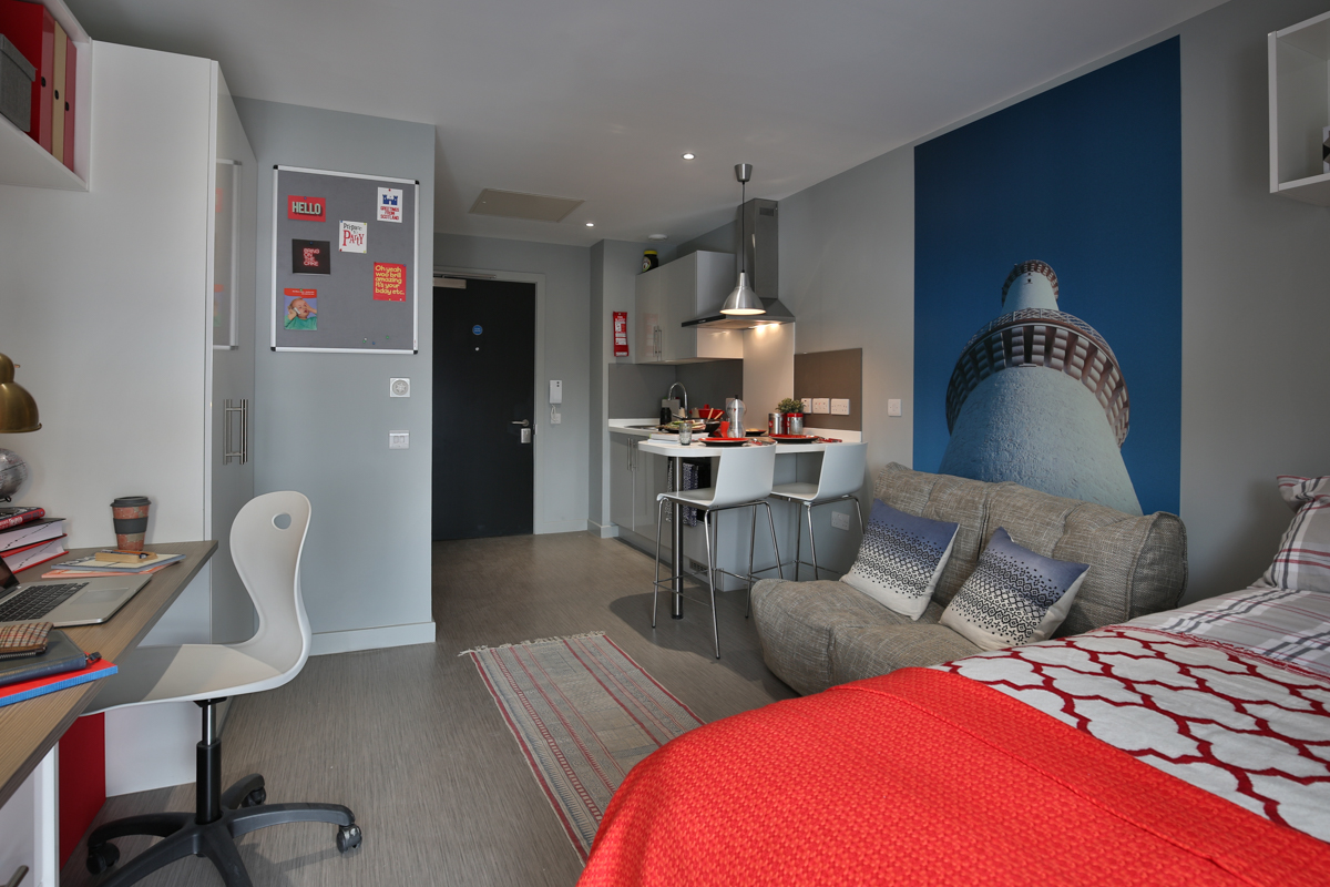 St Peter's Studios 主要提供各种面积的 Studio(单间套房) 房型,均配备独立卫浴和独立厨房,房间内配有小双人床(120cm * 190cm)、书桌、衣柜、烤箱、微波炉、炉灶和冰箱等基本家具和电器。公寓内部提供了完善的生活设施和周全的服务,旨在为学生创造一个安全、舒适的居住环境。