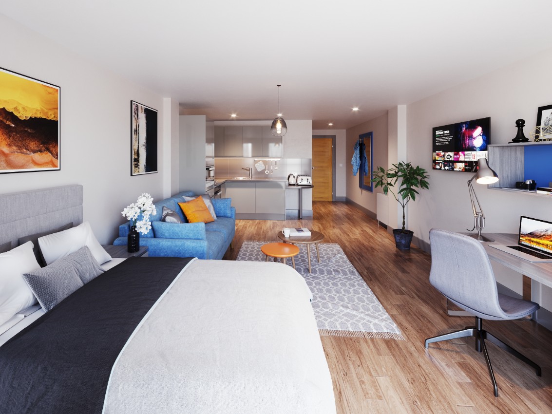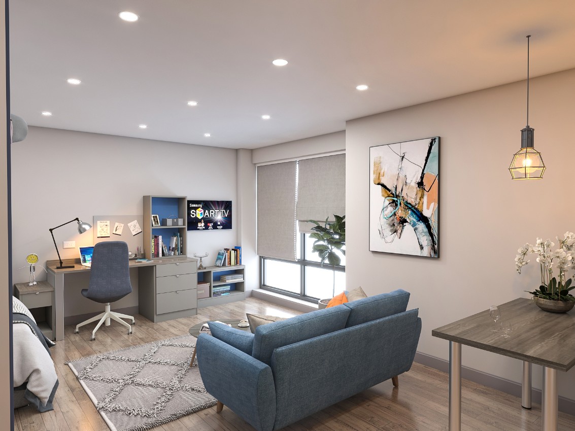 2020 年全新 Studio 公寓太香了!25-30㎡多面积可选,步行 12-17 分钟覆盖利兹大学各学院,20 分钟到利兹贝克特大学,15 分钟冲市中心,健身房 + 电影放映室配齐,包全 bills+100% 步行通勤多校,利兹学生闭眼冲。
