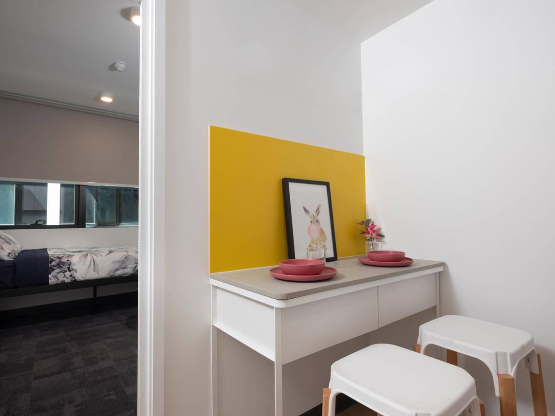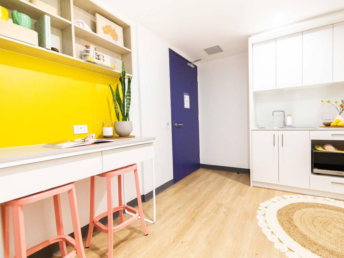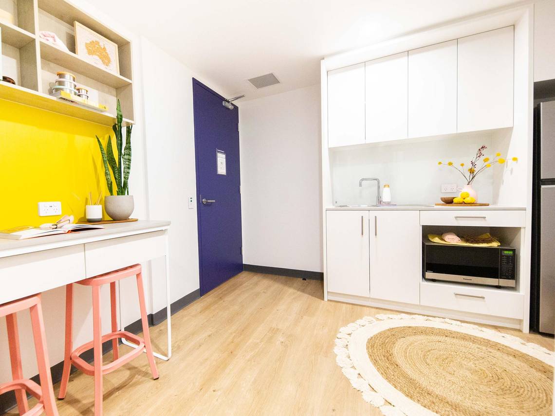 公寓提供单人间、双人间和多人间等不同类型的住房选择,满足学生不同的需求和预算。每间客房均配有一张特大号单人床、专用书桌、办公椅、衣柜和储物空间。公共厨房配套齐全,每天都有专人打扫,干净卫生,非常适合喜欢下厨的小伙伴~