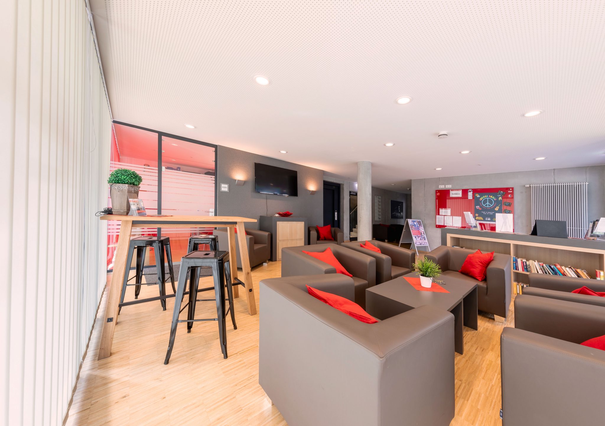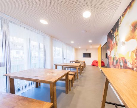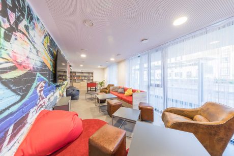 洗衣房在地下室,您无需出门即可全天候清洗和烘干(需付费)。免费借用家居用品,例如吸尘器、熨斗和熨衣板、PlayStation 或棋盘游戏等。所有公共区域都处于视频监控之下。保安服务在晚上和周末值班。我们的员工接受过急救和防火方面的培训,以便在紧急情况下能够正确快速地做出反应。公共区域、书房、健身室、电影和游戏区、社区厨房和户外区域已根据现行法规进行了升级和改造。