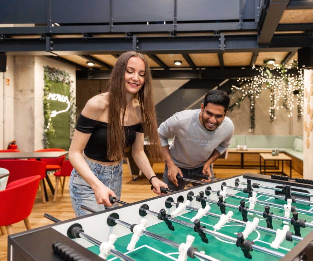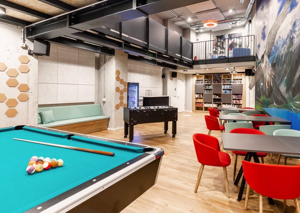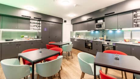 公寓配套设施完善且实用,24 小时监控系统全方位保障居住安全。专属自习室安静整洁,是专注学习的理想空间;健身房配备基础健身器材,方便日常锻炼;游戏室(含台球桌)与电影放映室为休闲时光增添乐趣。同时提供自行车存放处、包裹接收服务与洗衣房,满足日常需求。免费借用的吸尘器、熨斗、晾衣架等家居用品,让居住更省心,不定期组织的小型社群活动,也为留学生搭建了社交平台。